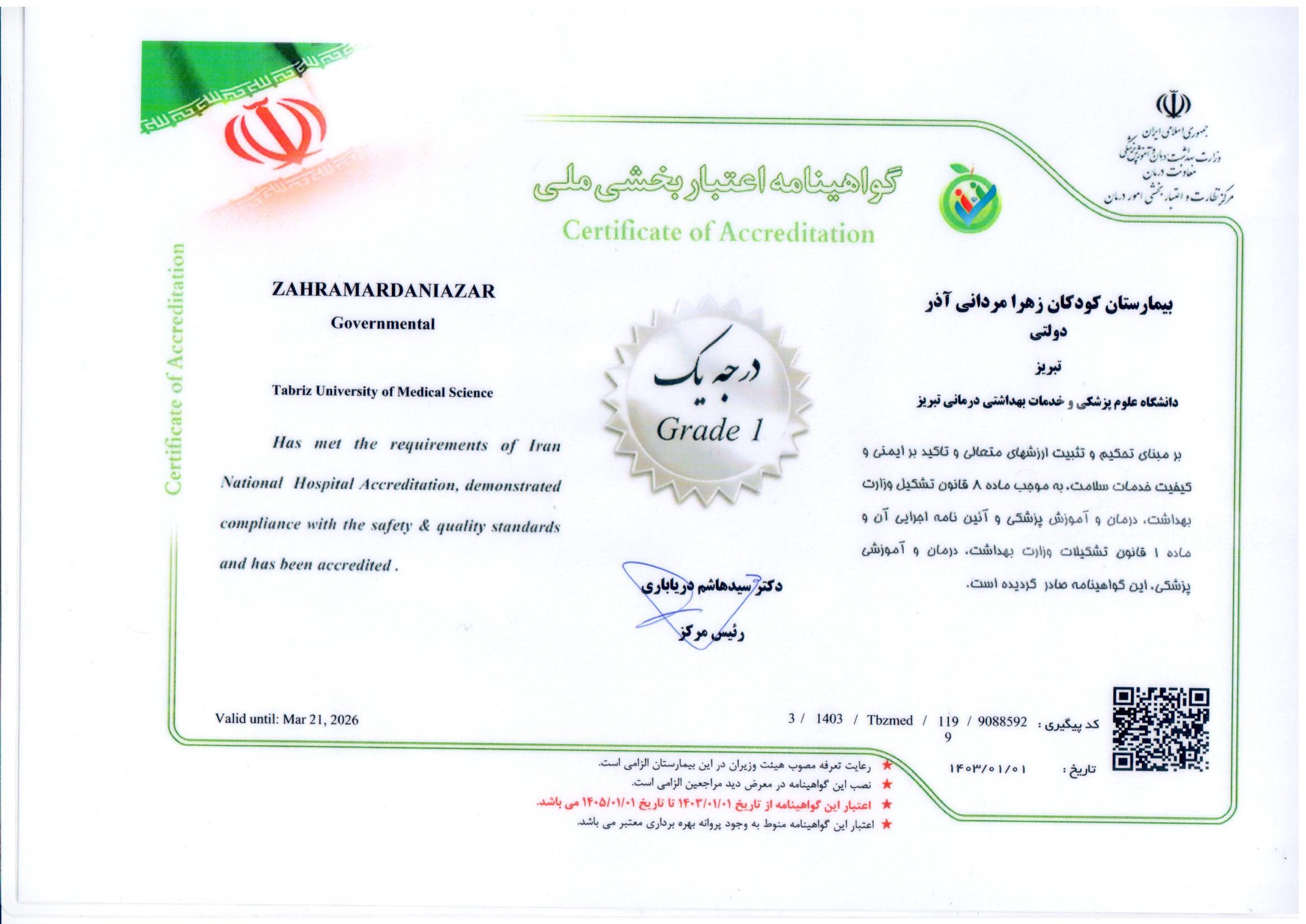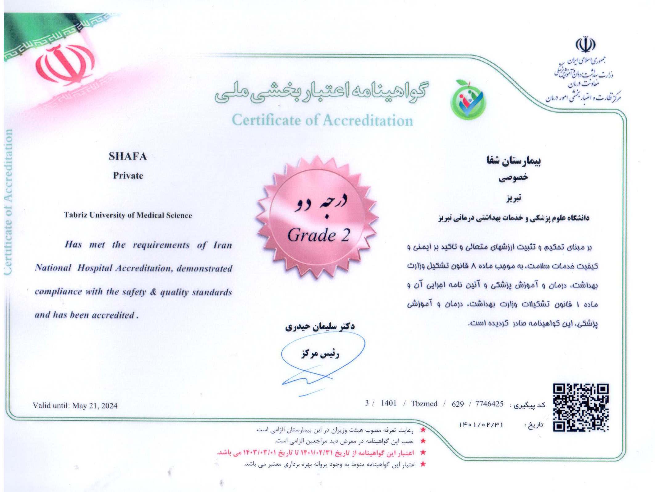نام بیمارستان | شهر | نوع بیمارستان | درجه اعتباربخشی | گواهینامه |