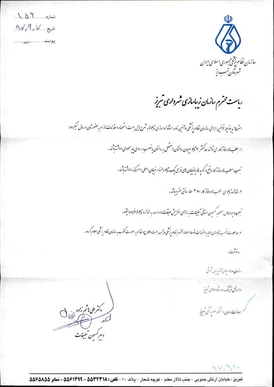 آئین نامه استانداردسازی تابلوها و سرنسخه های موسسات پزشکی،شاغلان حرف پزشکی و وابسته پزشکی 1383/01/25