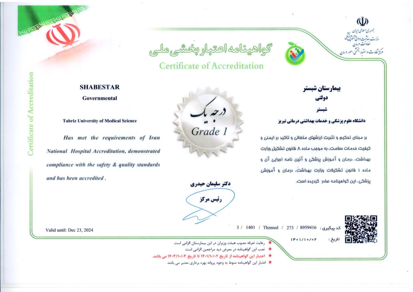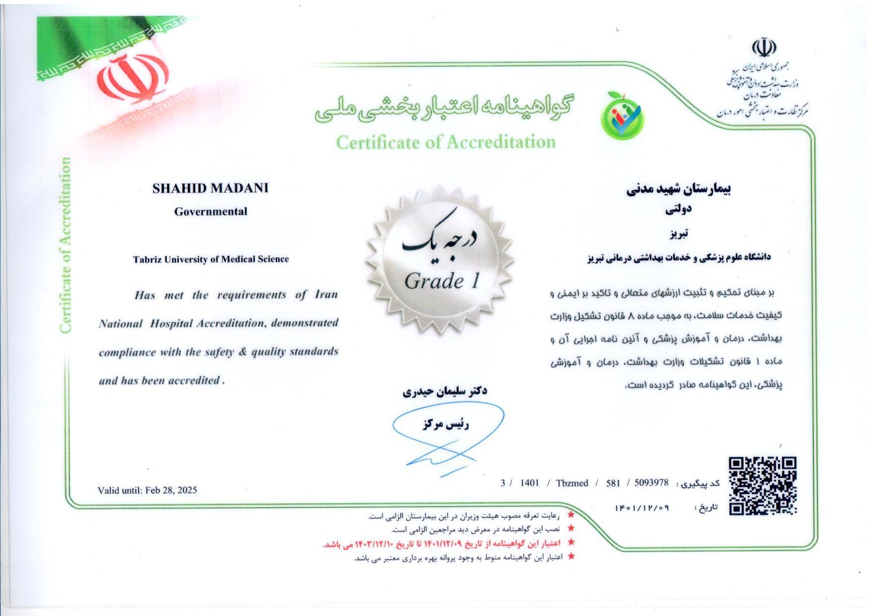 آخرین درجه بندی بیمارستانهای استان آذربایجانشرقی |